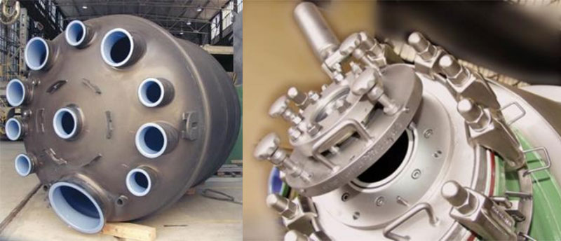 搪玻璃反應(yīng)釜法蘭表面不平整,需要特殊類型的包覆墊。如果選擇錯誤的密封墊片或扭矩維護不當都可能導(dǎo)致搪玻璃設(shè)備的損壞。而反應(yīng)釜噴嘴或人孔處強腐蝕性介質(zhì)的微小泄漏也會滲入法蘭表面,破壞法蘭邊緣/末端的玻璃,進而破壞容器本身,因此該處密封顯得尤為重要。